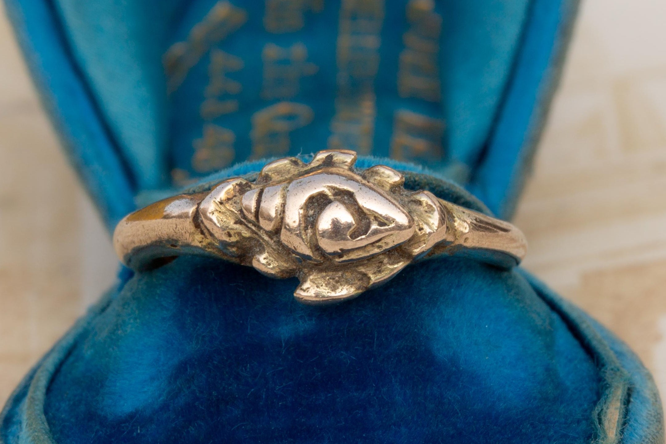 The ring is formed with a distinctive lozenge-shaped bezel, raised and bordered by a jagged, radiating discus motif, representing the ‘Chakra’. At its centre is a finely modelled conch, the ‘Shankha’, one of the principal attributes of Vishnu. Together, the Sudarshan Chakra and Shankha symbolise divine protection, cosmic order, and the cyclical nature of time; the Chakra as the wheel of time and power, and the Shankha as the primordial sound of creation.