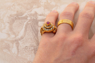 These rings were made for the monarchy and aristocratic class of Siam to be worn as part of the lavish adornment paraphernalia used in ceremonies. These elaborate rings were subsequently given as gifts to important visitors or other aristocratic families.