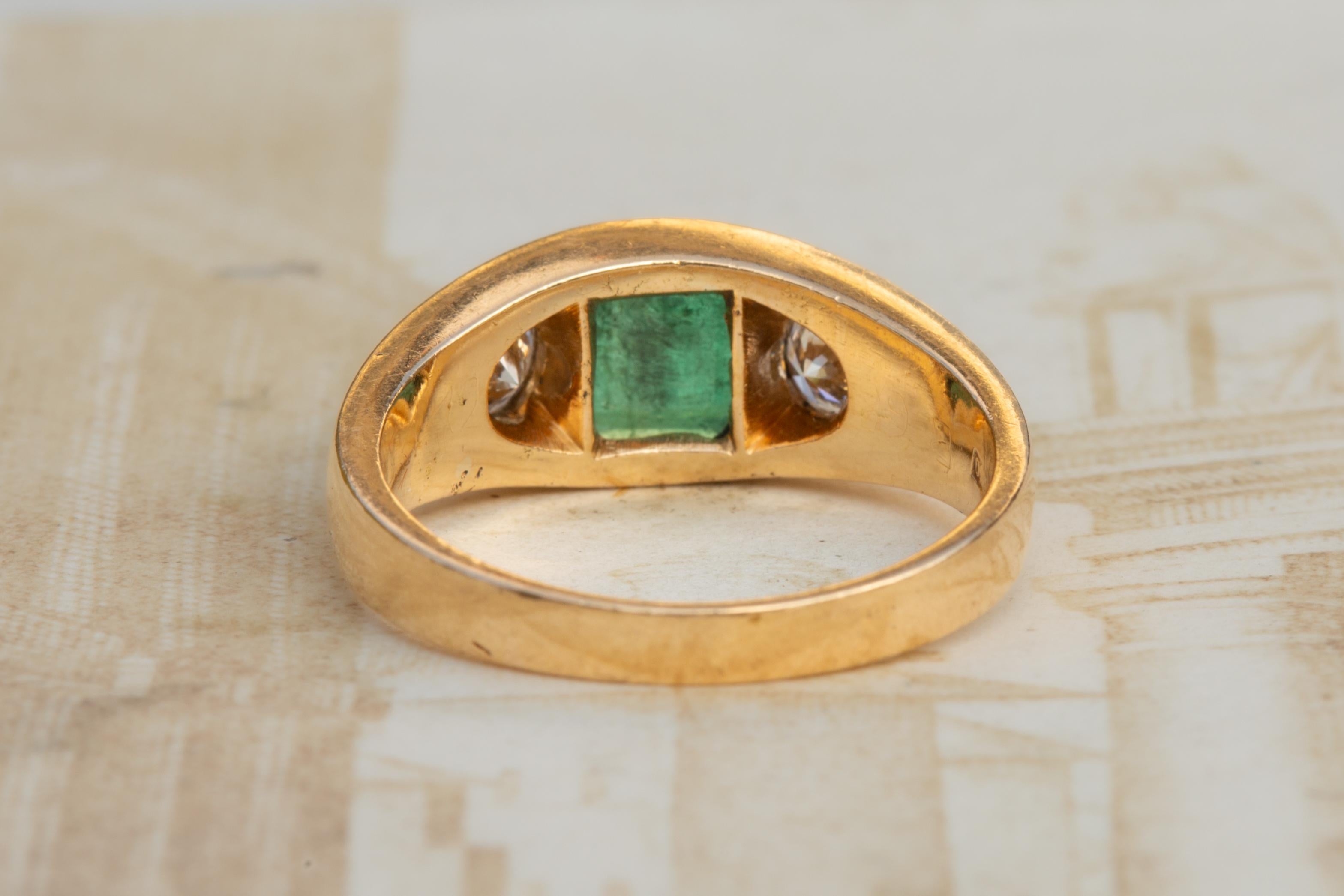A handsome antique emerald and diamond ring made in Germany, circa 1910.